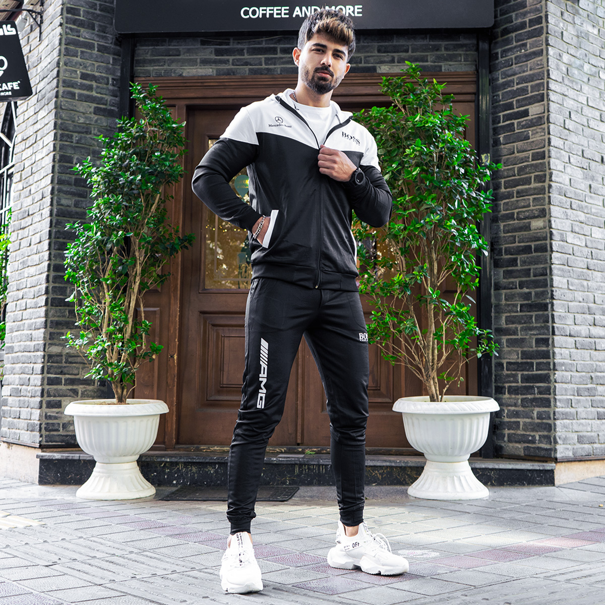 ست سوییشرت شلوار سفید مشکی مردانه مدلBoss